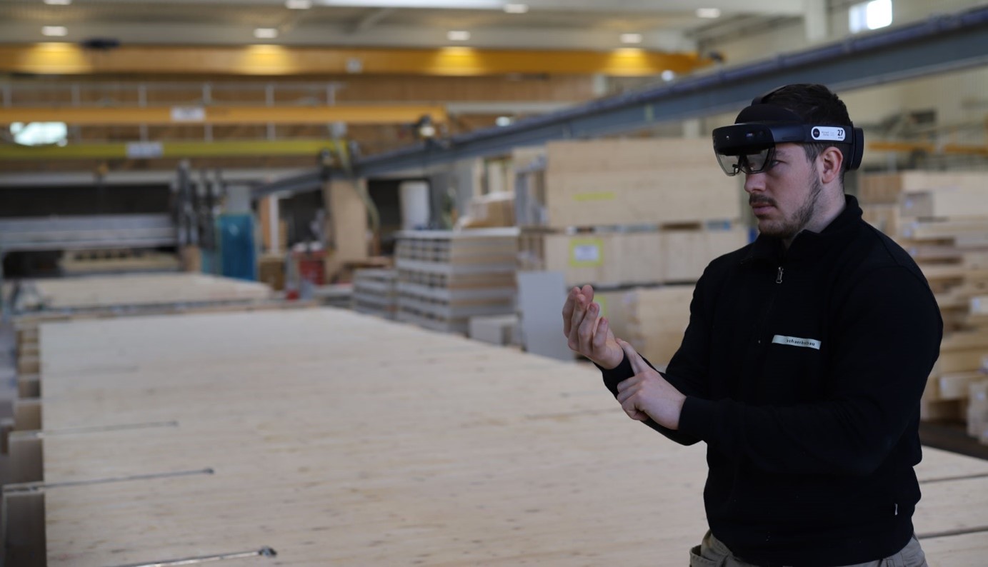 Da die Planung der Gebäude und der Elemente bereits digital und räumlich geschieht, könnten diese Pläne in Mixed Reality auch räumlich dargestellt werden. Mit dieser Idee entstand die ElementBau App für die HoloLens 2. Die App ermöglicht erstmalig einen komplett digitalen Arbeitsablauf von der CAD-Planung bis hin zur Montage auf dem Zusammenbautisch.