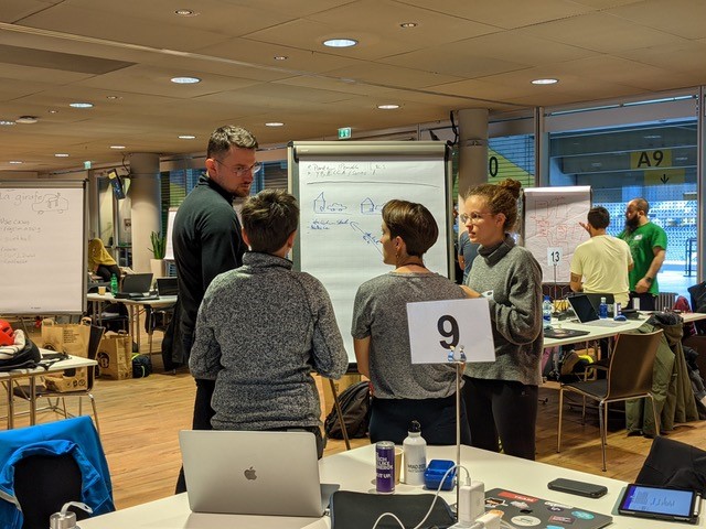 Nach einem kurzen Willkommen und der Vergabe der Challenges geht’s um 11 Uhr los mit hacken. Und für mich beginnt das eigentliche Vergnügen:-) Ich lasse die Teams erst ein bisschen brainstormen und höre hier und da etwas zu und nutze die Gelegenheit, mich mit den Challenge Partnern auszutauschen.